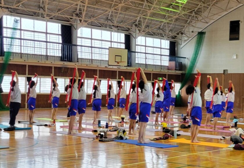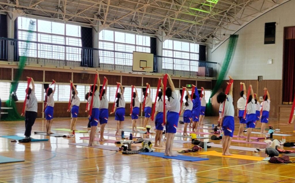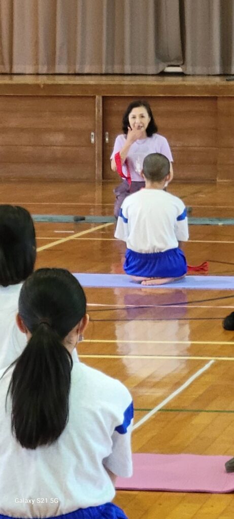 生徒達の初めてのヨガ体験に笑顔いっぱいのほんわか授業に私も幸せのお裾分けを貰えました()